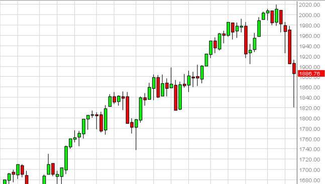The S&P 500 fell hard during the course of the week, but bounce significantly off of the 1820 level. The resulting candle of course is a nice-looking hammer, and that of course is a very positive sign. If we can break above the top of the hammer, we feel that the market should then go to the 2000 level over the course of the next couple of weeks. Either way, the market looks as if it wants to go higher, and therefore we have no interest in selling this market anytime soon.