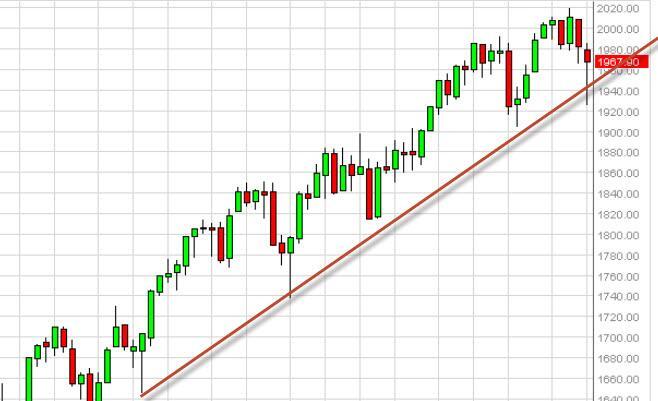The S&P 500 fell during the majority of the week, but as you can see found enough support near the 1925 level to bounce and form a nice-looking
