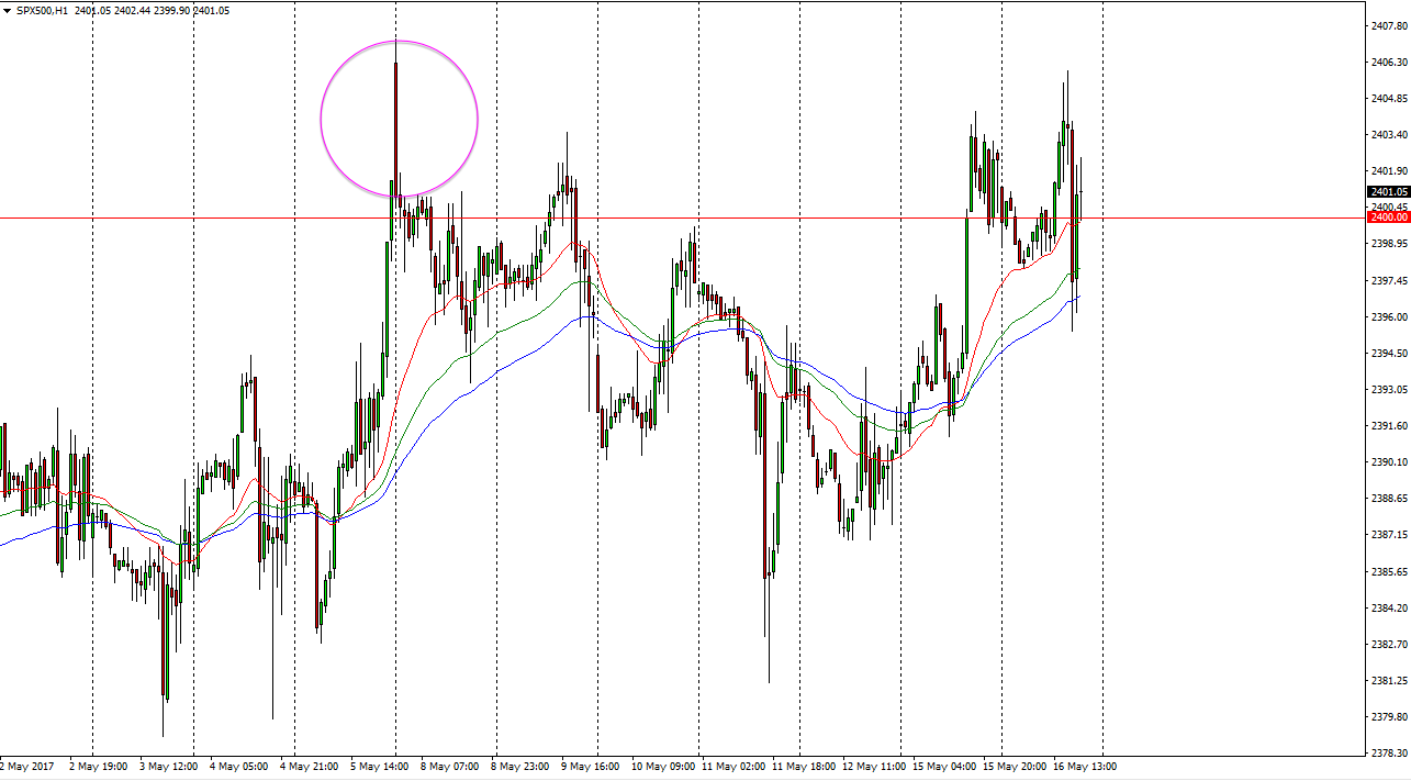 The S&P 500 has been very choppy during the session on Tuesday, as we continue to hover around the 2400 level. Ultimately, I believe that the market