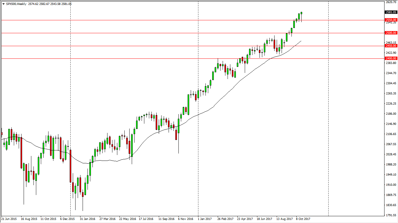The S&P 500 initially fell during the week, testing the 2550 handle. We found enough support there to turn things around though, and by the end of the
