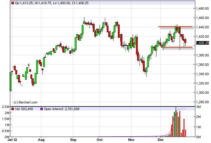 If we do manage to break down below the 1400 level, it would be a sign that things are taken a much more ominous tone in Washington DC. If that happens, 1380 will be the first up, followed shortly behind by 1340 if we really can keep the momentum going. Beyond that, we think there is more of a chance of this market takes off to the upside based upon a deal getting done. We don’t necessarily think that it will be a permanent change to the upside as there are many headwinds out there, but there will be a high chance of a “relief rally” once we finally get past this process.