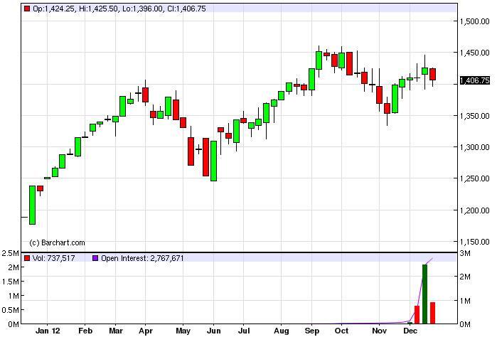 The S&P 500 futures fell for the week but remained above the 1400 level in order to respect the consolidation range that we have been over the last couple of weeks. With the low liquidity this time here, it really is in a surprise to see this market struggling to make any significant moves. However, there are also mitigating factors involving Congress. After all, they are still discussing the so-called “fiscal cliff”, and this can most certainly move the markets as well.