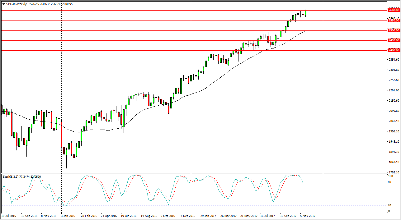 The S&P 500 initially dipped during the week, but then turned around to show significant bullish pressure, reaching the 2600 level. By doing so, it