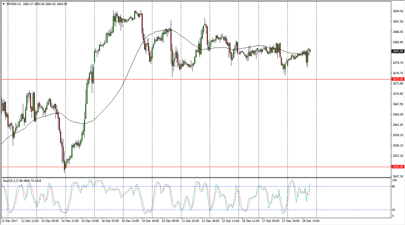 The S&P 500 has gone sideways during the trading session on Thursday, as we continue to see plenty of support at the 2675 level underneath. That is an area that I think continues to be supportive over the next couple of sessions, with low-volume.