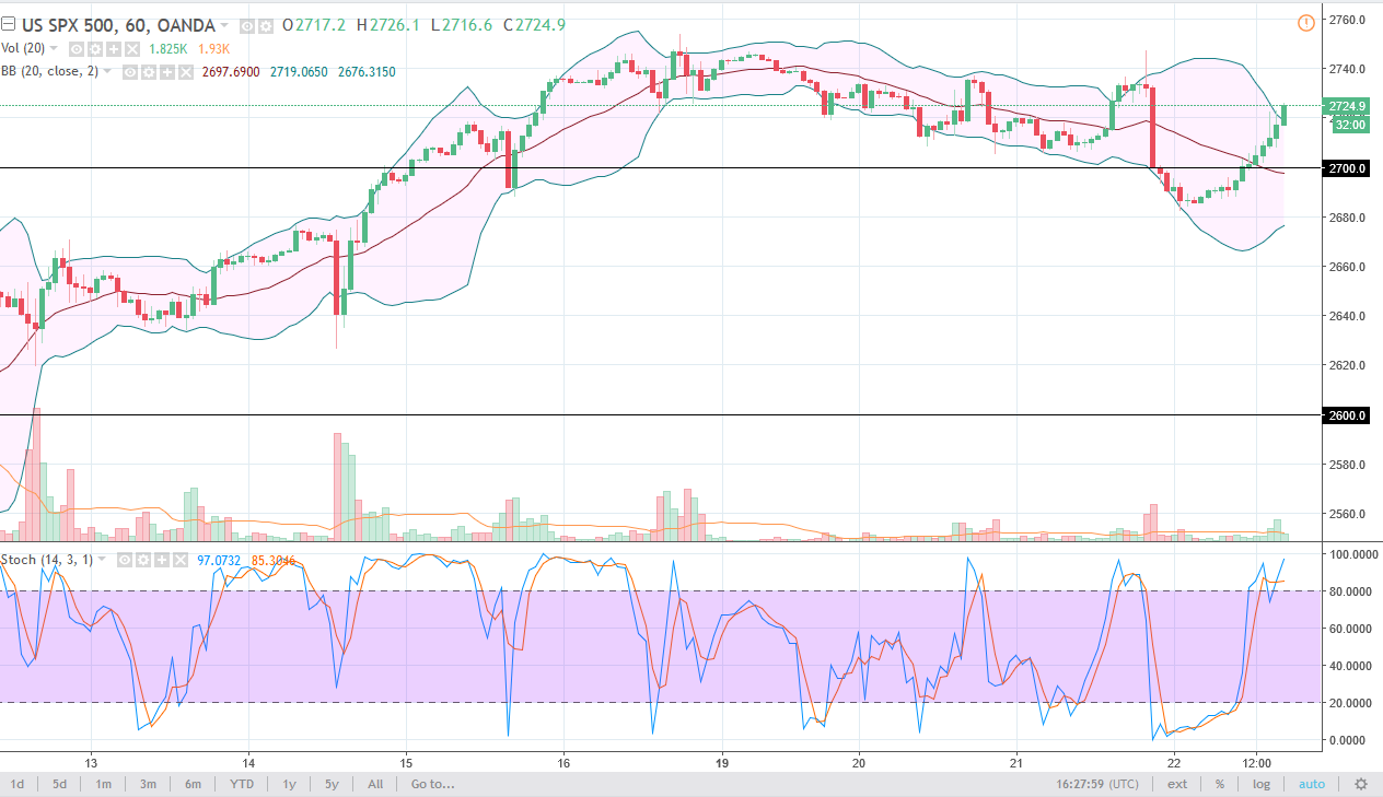 The S&P 500 rallied significantly during the trading session on Thursday, breaking above the 2700 level. By doing so, the market looks likely to continue to go higher, especially considering that the impulsivity of the market during the day was so strong.