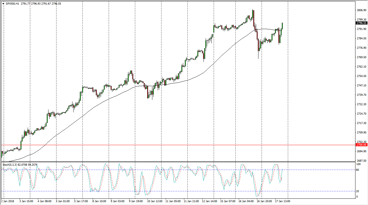 The S&P 500 went sideways during most of the session on Wednesday, as we continue to see a lot of volatility. The 2800 level course has offered resistance, so I think that breaking above there is a very bullish sign, specially make a fresh, new high.