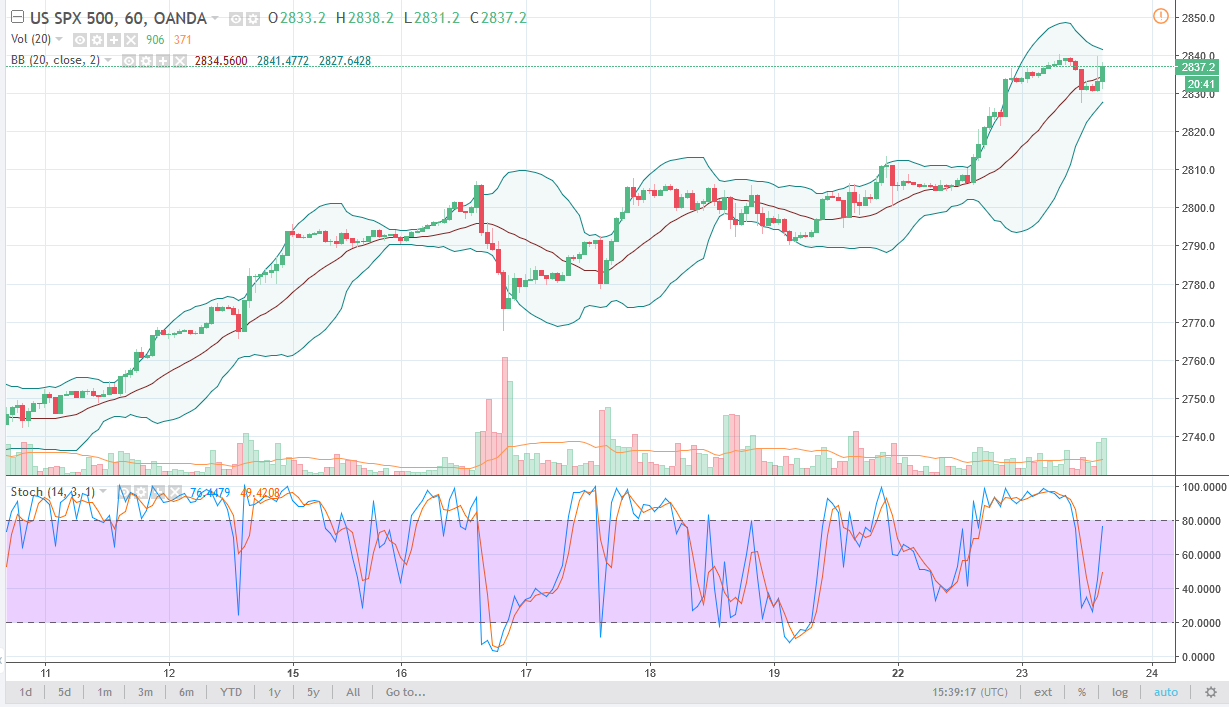 The S&P 500 rallied a bit during the day on Tuesday as Americans came back to work, based upon stronger corporate earnings. We have the tax bill working in favor of the US economy as well, and that of course has push this market higher recently. I believe that the market will eventually go to the 2850 handle, and then eventually the 2900 level. Longer-term, I’m anticipating a 3000-handle test, but it will take a significant amount of momentum to get there.