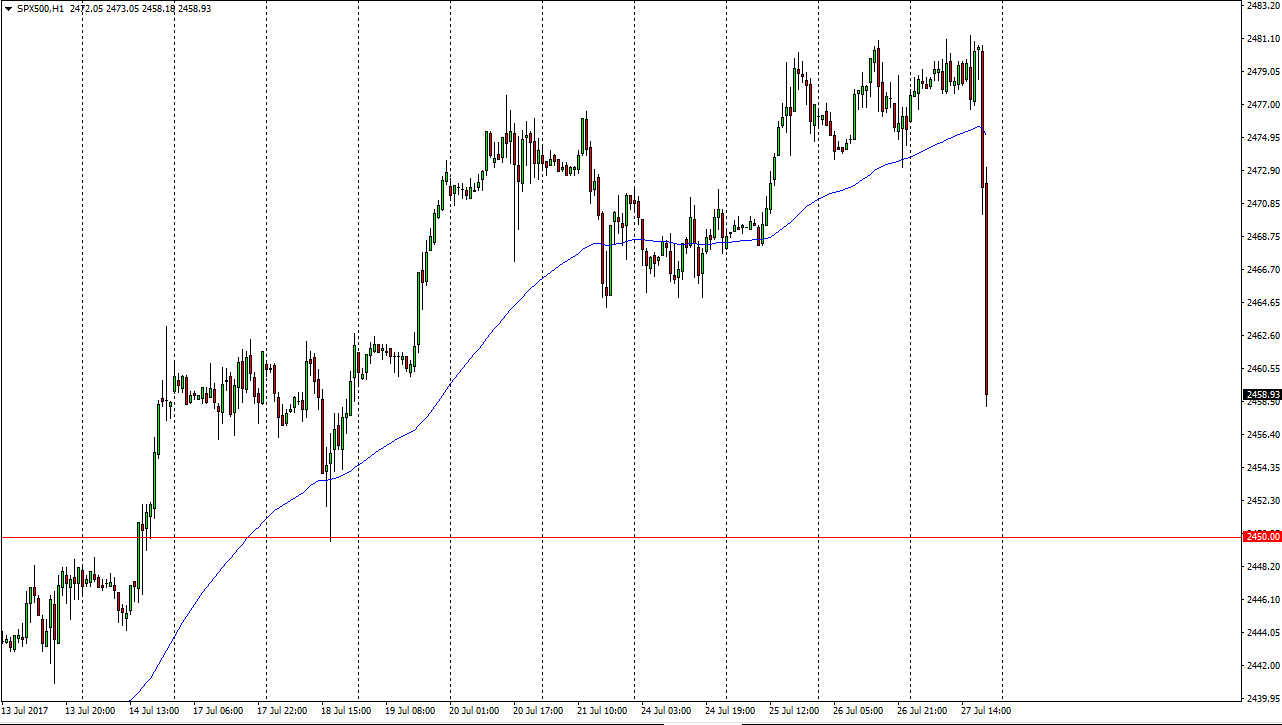 The S&P 500 went sideways during most of the day but then started to pick up volatility as Thursday got further along. I believe that the market underneath at the 2475 handle is showing a bit of support, but right at this point in time I think that we are continuing to see a lot of noise in the market and perhaps it is difficult to hang onto a trade for any length of time. I think short-term trading back and forth is probably as good as it’s going to get. If we can break above the 2500 level, that is a longer-term “buy-and-hold” situation, but we don’t have it yet. If we can break down from here, I think that we will see support below given enough time, so this pullback might be short-lived at best.
