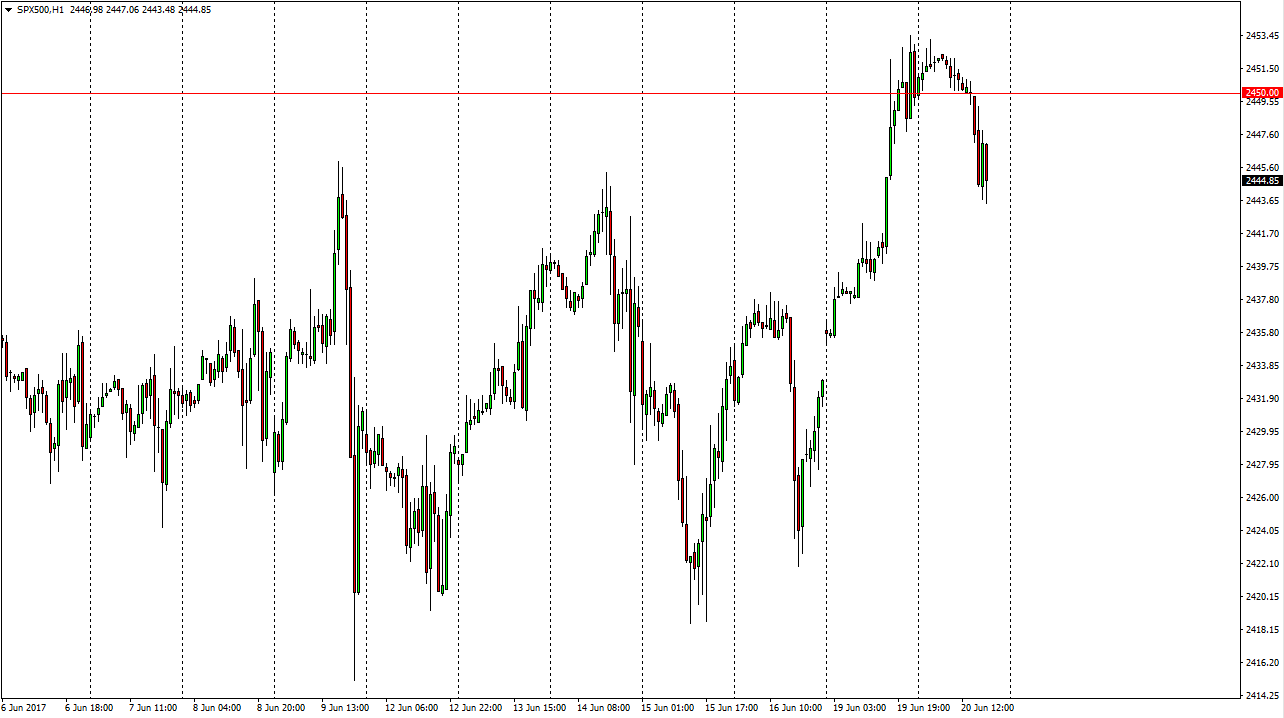 The S&P 500 fell slightly during the course of the session on Tuesday, slicing below the 2450 handle. The market slicing below that level is a
