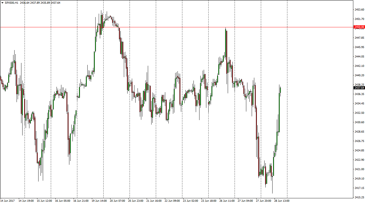 The S&P 500 started out the day rather choppy, but then shot straight through the ceiling as we broke above the 2425 handle. This is a very bullish