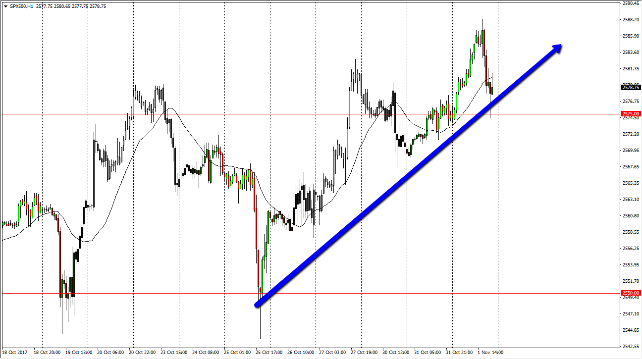 We are in the middle of earnings season, and of course, people are concerned about what the Federal Reserve may do, so that has a bit of volatility reentering the marketplace. Longer-term, I believe that the buyers will return because quite frankly even if interest rates to rise a bit, they are not going to be anywhere near high enough to take the stock market down anytime soon. I look at the 2500 level as the “floor” in the market longer term now, so I believe that if you are patient enough, you should get an opportunity to go long of the S&P 500. I’d be willing to take a small position now and then add on the dip or perhaps even a breakout above. There continues to be a lot of noise, but quite frankly I think we will continue the uptrend eventually. Because of this, I don’t have any interest in shorting.