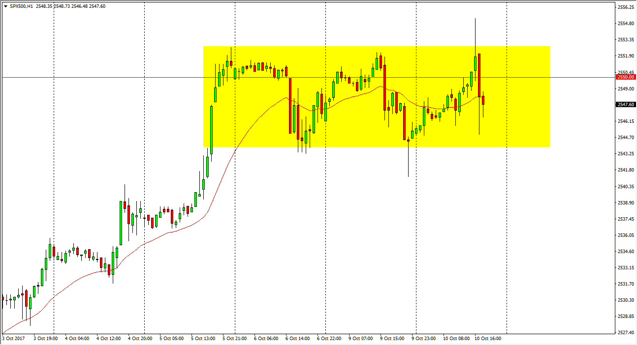 The S&P 500 rallied initially during the day on Tuesday, reaching towards the 2550 handle, but then turned around to fall significantly. I think the