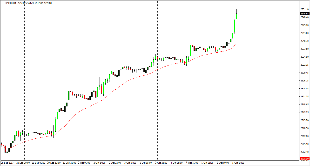 Longer-term, I anticipate that the market is going to go looking towards the 2600 level, and then eventually 3000 sometime next year. Obviously, that’s a longer-term outlook, but I think that dips continue to offer value that people will be taking advantage of. The 2500 level underneath should be the bottom of the uptrend, and if we can stay above there we should continue to enjoy bullish pressure. We are heading towards earnings season again, so the markets may slowdown soon, but I think it’s only a matter of time before we get better economic numbers that continue to propel this market to the upside. After all, most economic announcements have been healthy and as the markets rotate out of technology and into industrials and financials, the S&P 500 should continue to do quite well. Stock markets around the world continue to rally, the S&P 500 of course won’t be any different as we have started to see even more buying pressure in a market that simply cannot be sold. This is a rally that continues to defy gravity.