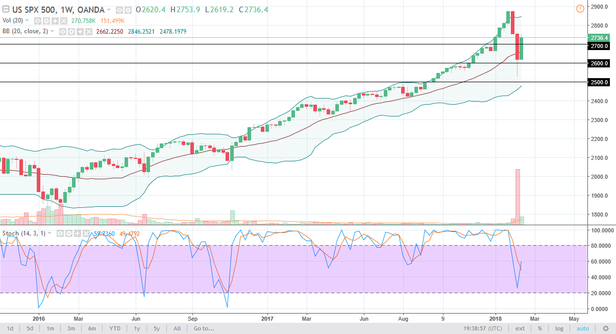 The S&P 500 had a very strong week, wiping out almost all the losses that happened last week. At this point, it looks as if the S&P 500 is ready to go much higher, perhaps reaching towards the 2900 level, possibly even higher than that.
