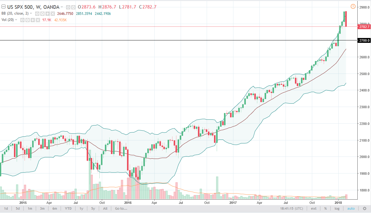 The S&P 500 broke down significantly during the week, especially after the jobs number came out. With interest rates rising in the United States, that has put downward pressure on stocks as it typically does, but quite frankly we had been overbought for a while and this could be an opportunity if you are patient enough.