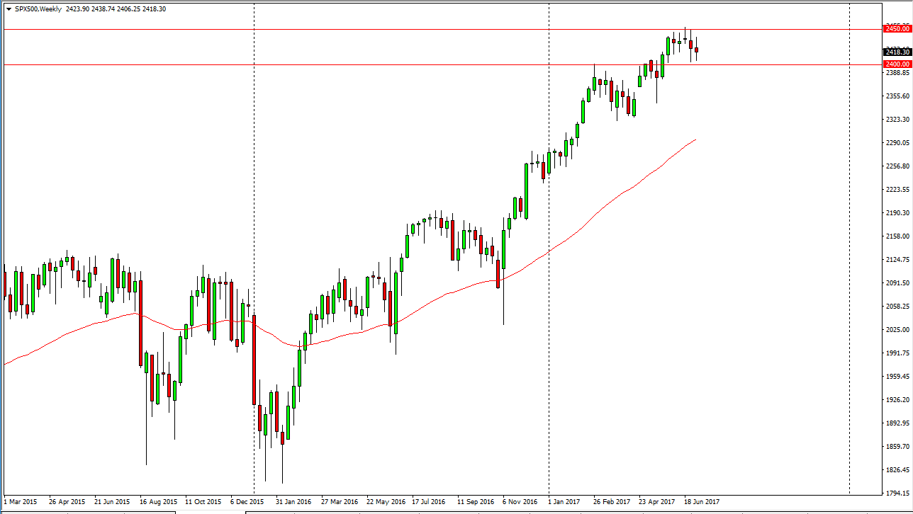 The S&P 500 had a choppy week, as we trying to break above the 2450 level but failed, only to fall towards the 2400 level and find more buyers. The