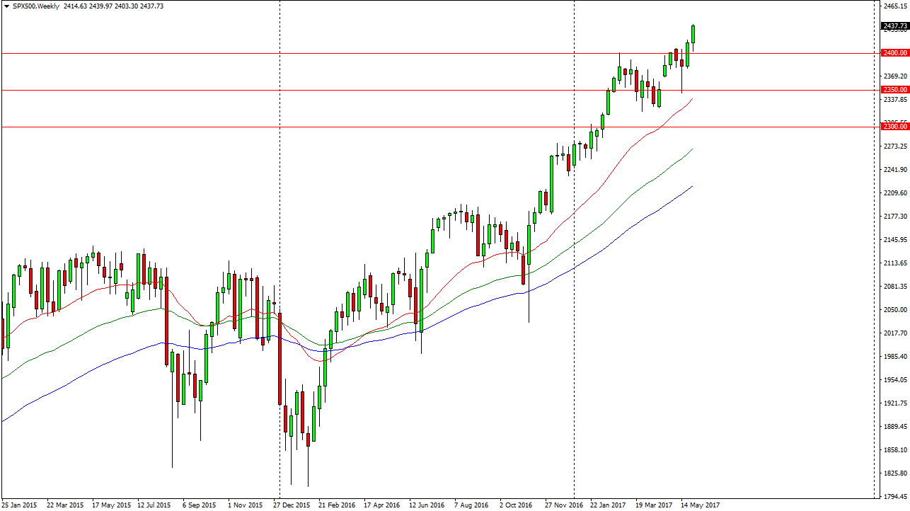 The S&P 500 initially fell during the week but found enough support at the 2400 level to bounce significantly and show it strength. I believe that the