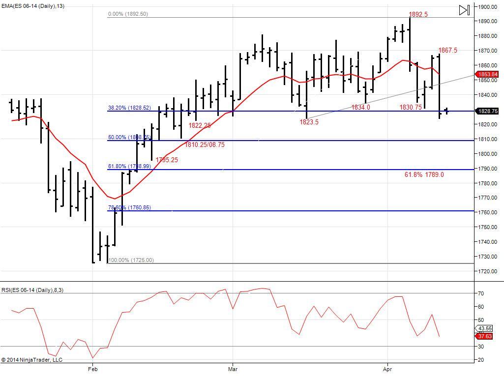 S&P 500 poised at critical 1823.5 support Whipsaw price action through this week has finally resolved to the downside after a bearish outside pattern