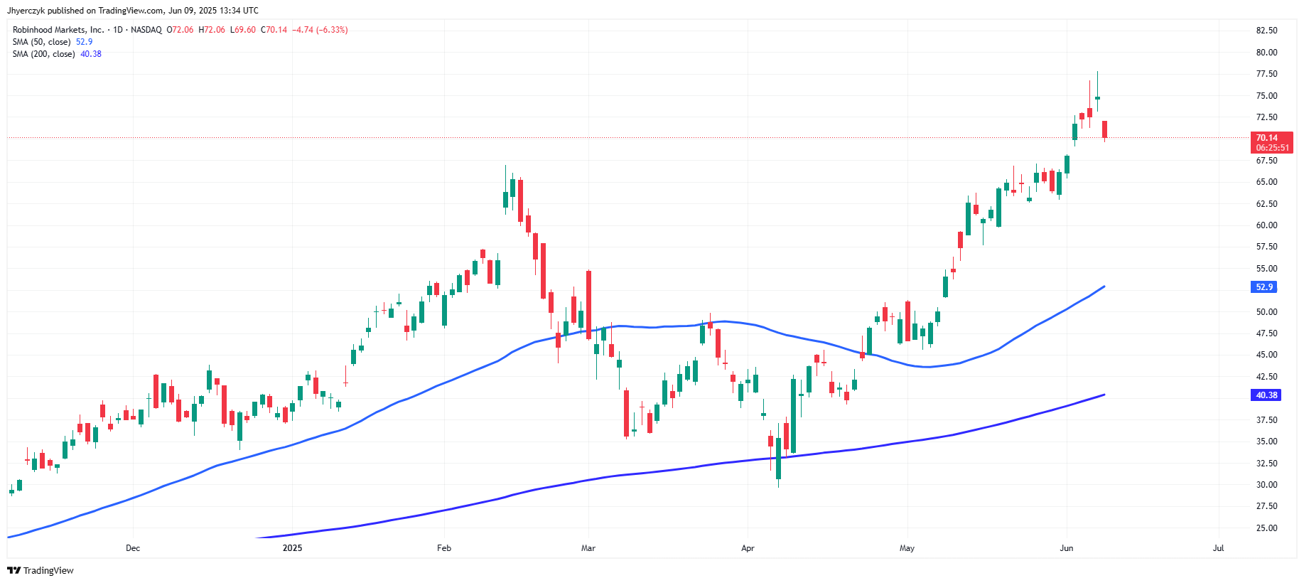 Meanwhile, Apple kicks off its 2025 Worldwide Developers Conference today. With the stock down over 18% this year, analysts are watching for product or strategy updates that could lift sentiment.