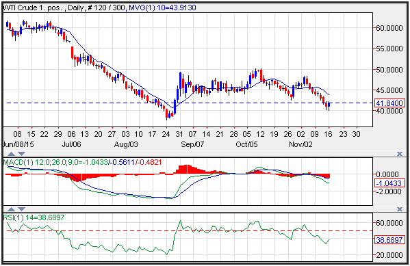 Despite this information, crude oil price squeezed higher, closing up at 41.84, and poised to test resistance near the 10-day moving average at 43.91. The RSI (relative strength index) which is a momentum oscillator that measures overbought and oversold levels, moved higher with price action reflecting accelerating positive momentum. The current print of 38.6, is on the lower end of the neutral range. Momentum as reflected by the MACD is negative with the index printing in the red with a downward sloping trajectory.