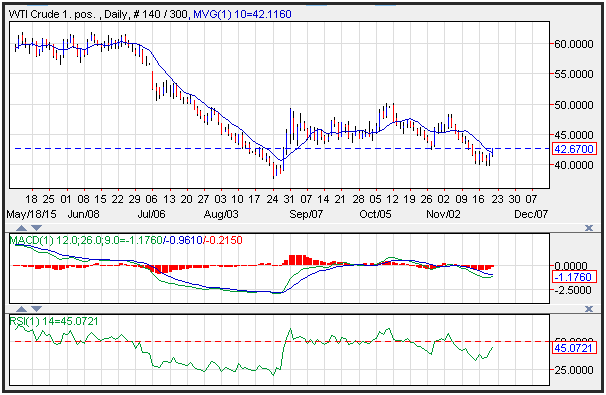 Prices edged above the 10-day moving average testing resistance near the early November low at 42.75. Support is seen near 40 per barrel and then again at the August lows at 37.75. Momentum is negative but is poised to turn positive as the trajectory of the MACD is moving upward and could generate a buy signal in the near future. The RSI moved higher with price action reflecting accelerating positive momentum.