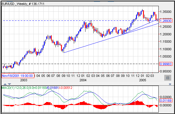 The EUR/USD is poised to close below trend line support that connect the weekly lows in August 2014 to the lows in February and comes in at 1.2960. The next level of target support on a weekly basis is seen near 1.2680. Resistance is seen at former support at 1.2960.