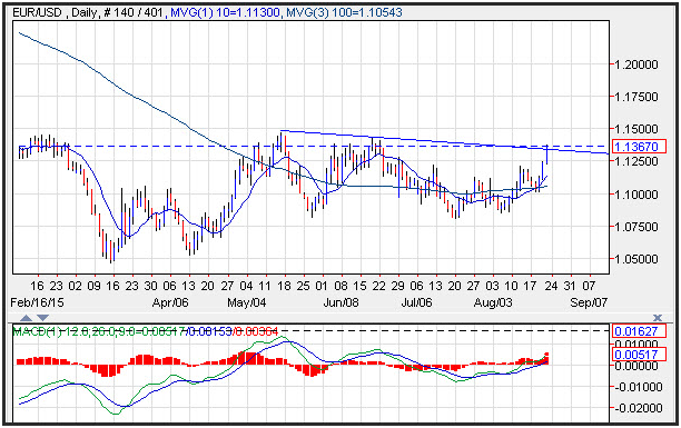 The EUR/USD continued to break higher closing above trend line resistance and poised to test the June and May highs a 1.1380, and 1.1490. Momentum