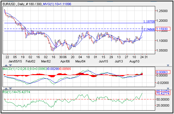 The EUR/USD soared to fresh 2015 highs surging as investors moved out of the U.S. dollar convinced that the Federal Reserve is now on hold until at least December of 2015. The dollar also lost ground against the Yen as investors looked for a safe haven asset in the midst of the capital markets carnage.
