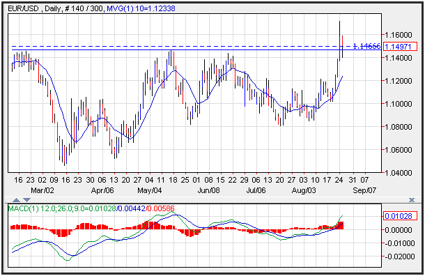 The EUR/USD created an inside day after soaring above trend line resistance as Chinese stocks continued to tumble. The Chinese stock market has dropped
