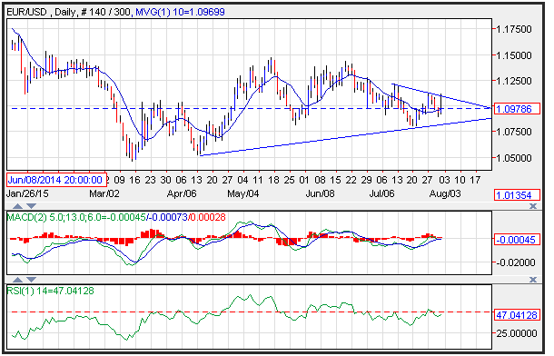 The EUR/USD tested trend line resistance but was unable to break key levels in the wake of a weaker than expected employment cost index. The lean 0.2% Q2 U.S. ECI rise marked a new cycle-low gain that sharply diminished the cyclical uptrend in labor cost growth from late-2009 recession-lows. The tiny rise follows 0.5%-0.7% gains over the prior four. The cycle-low 0.2% wage gain sharply curtailed the steep four-quarter climb in wage growth through Q1 that seemed at odds with the assumption of continued labor market slack.