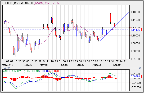 The EUR/USD whipsawed following a weaker than expected headline U.S. employment report that showed a weaker than expected headline number. The exchange rate broke through trend line support on Thursday, and tested the lows on Friday at 1.1080. Resistance is seen near the 20-day moving average at 1.12.