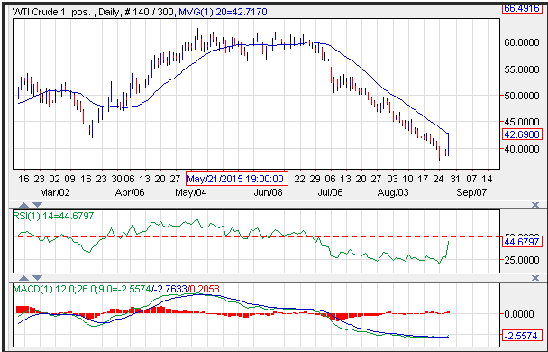Crude oil prices were on a tear, peaking at $42.69, and up more than 9% on the day. The move over $41.50 reportedly brought fund buyers into the market,