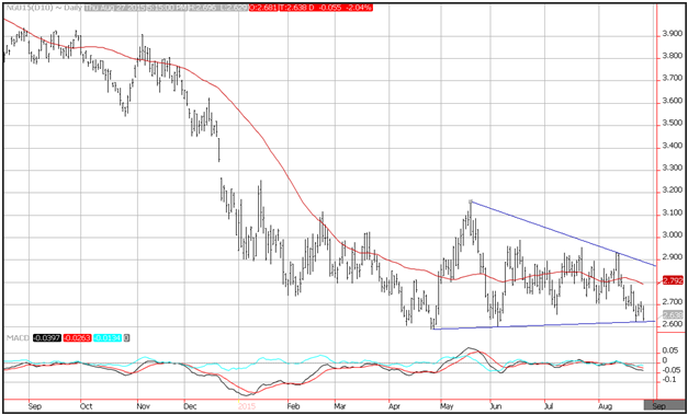 Natural Gas prices moved lower on Thursday following a report from the Department of Energy that showed a slightly higher than expected increase in inventories. The U.S. Energy Information Administration said gas stockpiles rose 69 billion cubic feet in the week ended Aug. 21, higher than the 61 bcf estimate projected in a consensus estimate of analysts. Total inventories now stand at 2.9% above average, with the market fully recovered from the severe supply drawdown prompted by the harsh winter of 2014.
