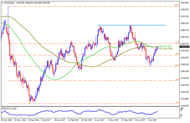 GOLD Gold’s reversal from $1205-04 support-zone is presently being questioned by 50-day & 100-day SMA confluence region of $1248-49, which if can’t