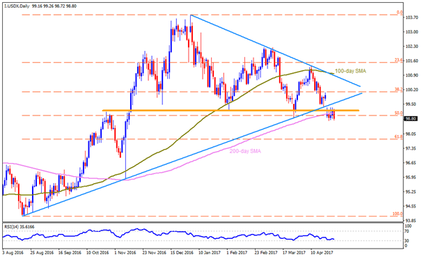 US Dollar Index Ever since the early-week result of French election dragged US Dollar Index to break eight-month old ascending trend-line, the greenback