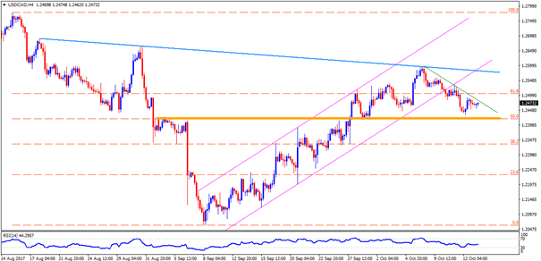 USD/CAD With the break of month-old ascending trend-channel joining hands with immediate downward slanting TL, the USDCAD is more likely to revisit the