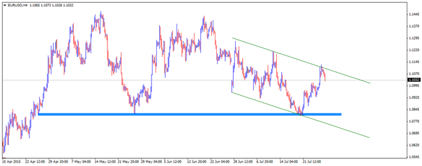 The pair’s recovery from 1.0800-20 support area seems to face hurdle at the upper trend-line resistance of a descending trend-channel formation on 4-hourly chart. From current levels the pair could possibly find immediate support near 1.1015-1.1000 horizontal area, which if broken seems to drag the pair to its next horizontal support near 1.0920-1.0900 support zone. Further, a decisive break below 1.0900 support region now seems to provide the required momentum to drag the pair below a very important support near 1.0800 area towards testing its next major support near 1.0650 level, also nearing the lower trend-line support of the descending channel. Meanwhile on the upside, 1.1100-20 region, representing the upper trend-line resistance of the channel, might continue to act as immediate strong resistance for the pair. A sustained strength above this immediate resistance opens room for an immediate upside move towards testing its next resistance near 1.1220-40 area. Moreover, a decisive strength above 1.1220-40 resistance area might continue supporting further near-term appreciating move for the pair towards testing a very important resistance near 1.1450 level.