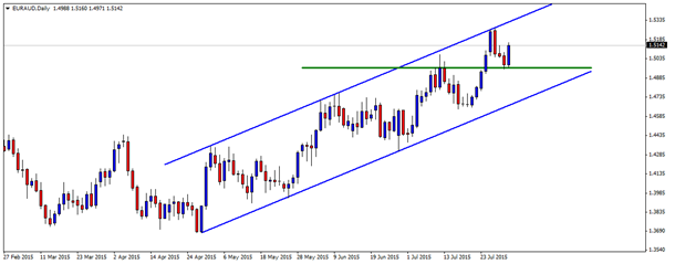 EURAUD The pair remains within a well-established up-trend, as depicted by formation of an ascending trend-channel on daily chart. Moreover, reversal from
