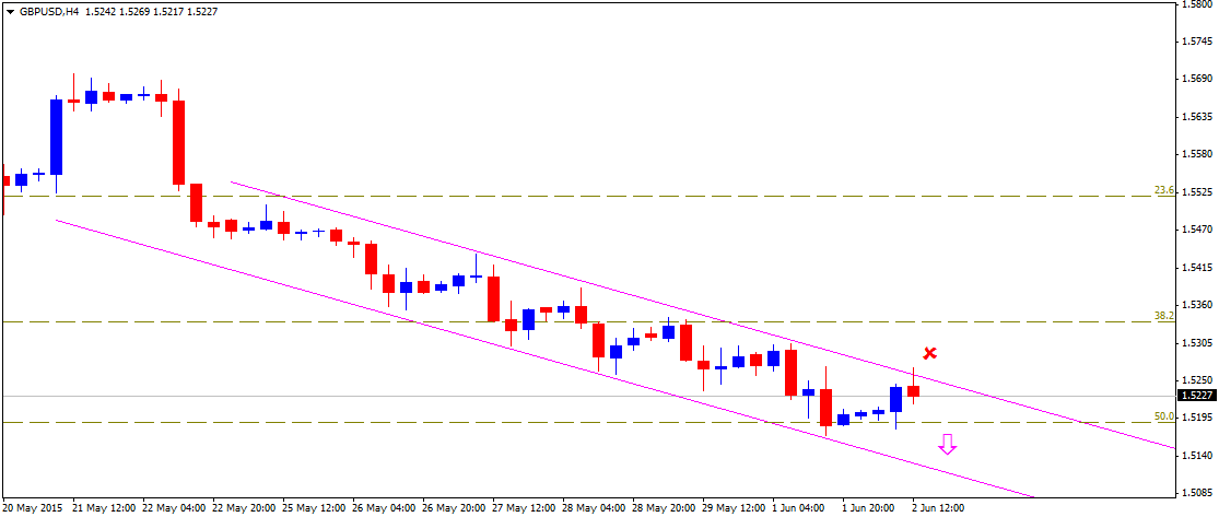 The pair’s reversal from 1.5800 mark and a subsequent drop below 1.5500 mark negated its bullish momentum triggered post UK Parliamentary election result. The follow-up weakness drag the pair back below 1.5300 mark but held an intermediate support near 1.5180-70 zone, marked by 50% Fib. retracement level of its up-move from April lows to high touched in the month of May. Now on 4-hourly chart the pair seems to have moved within a short-term descending trend-channel, with immediate upside resistance pegged at the upper trend-line resistance, currently near 1.5270-90 area. Till the pair continues trading below 1.5300 mark, it seems vulnerable to break below 1.5180-70 support area and continue drifting lower towards testing its next important support near 1.5110-1.5100 mark, also coinciding with the lower trend-line support of the descending channel. Weakness below 1.5100 mark now seems to open room for continuing the near-term downward trajectory back below 1.5000 psychological mark support. Meanwhile, a move above 1.5270-90 resistance area is likely to confront immediate resistance at 38.2% Fib. retracement level, near 1.5340-50 area zone. Only a decisive move above 1.5300 mark and a subsequent strength above 1.5350 resistance level might negate the near-term bearish outlook for the pair, paving way to reclaim 1.5500 psychological mark resistance, also nearing 23.6% Fib. retracement level.