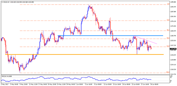 GOLD Ever since the Gold prices dropped below $1258.50 - $1259 horizontal-line during mid-June, it never surpassed the same while on the downside $1236.50