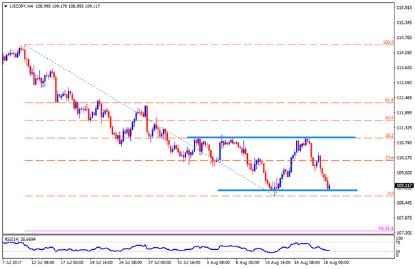 USD/JPY Following its failure to clear 110.90–111.00 horizontal-resistance, the USDJPY presently tests the 108.90-95 support-zone with oversold RSI