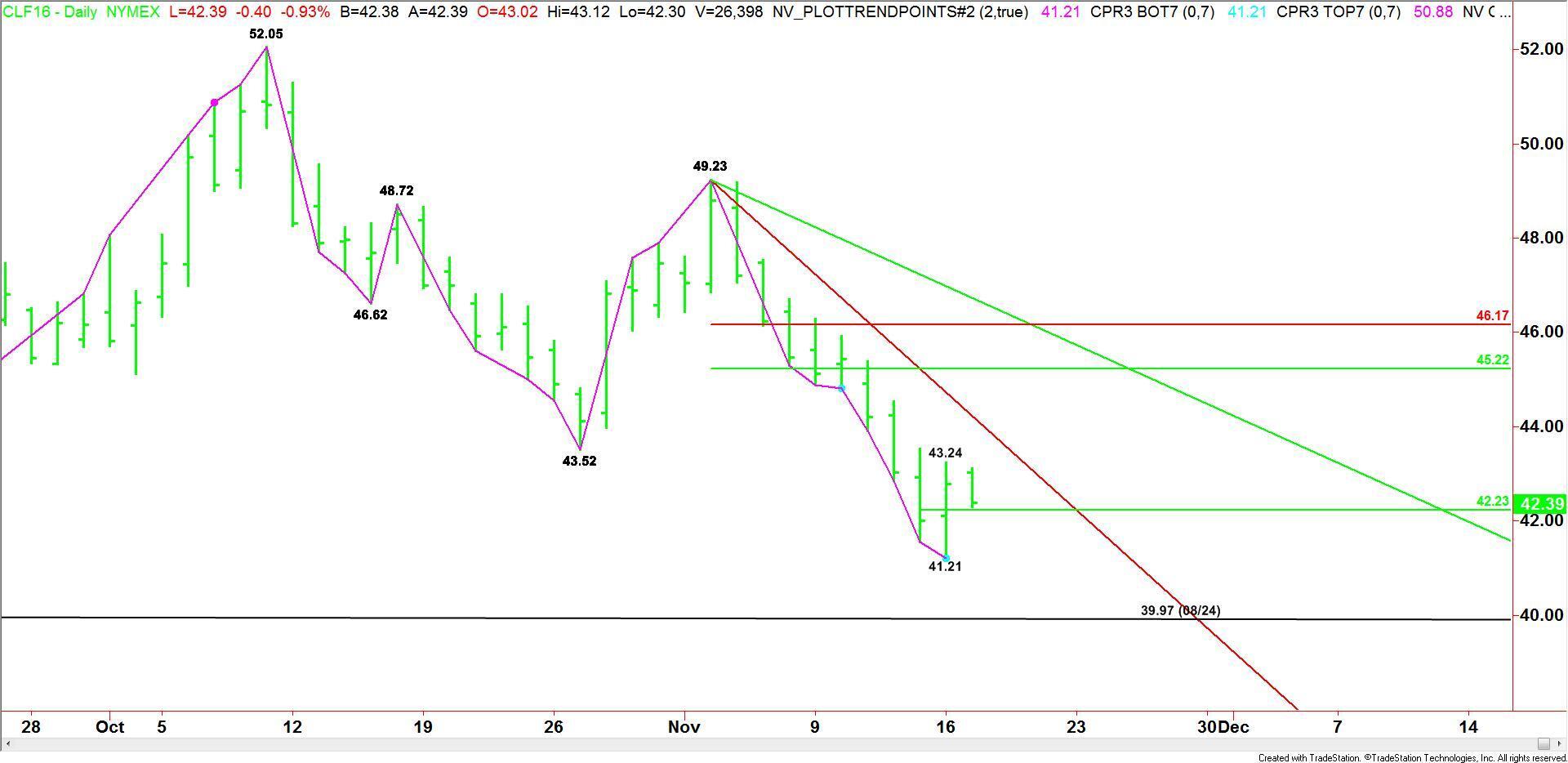 A trade through $43.24 will confirm the closing price reversal bottom chart pattern. If there is no confirmation then look for crude oil to retrace into the pivot. Aggressive counter-trend buyers may come in on a test of the pivot.
