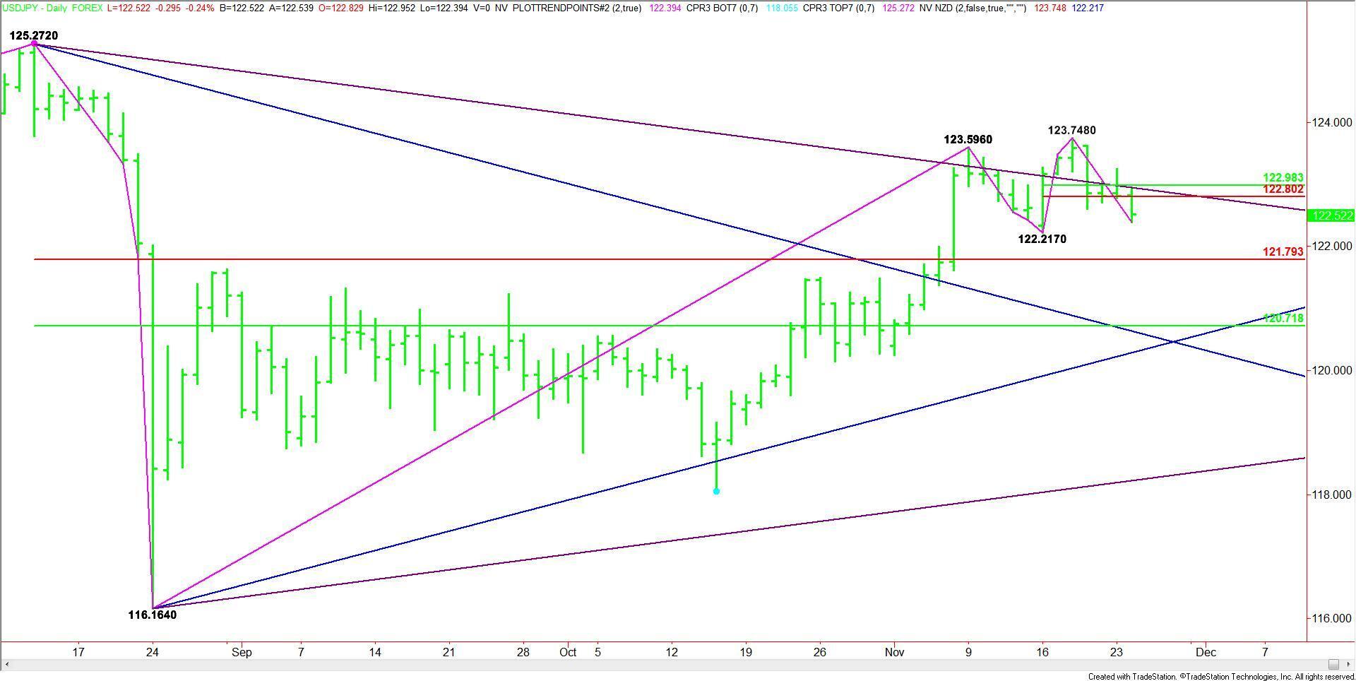 The trade of the day is in the USD/JPY. Traders, however, will have to choose between selling a rally back to 122.802 to 122.983, and selling at the market, looking for an acceleration into and through the swing bottom at 122.217. Better-than-average volume and volatility as well as a sell-off in the U.S. equity markets will help this trade.