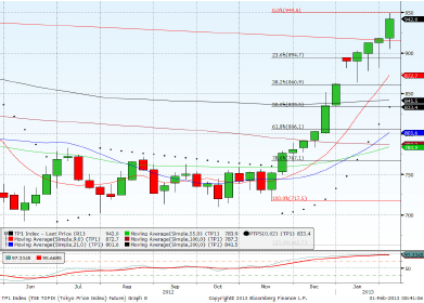 Topix March contract Forecast for 6th February 2013Topix beat edged towards the next target at 966 to continue the incredible run but came to a halt just below at 962 and took a tumble to test our initial target for profit taking at 939.