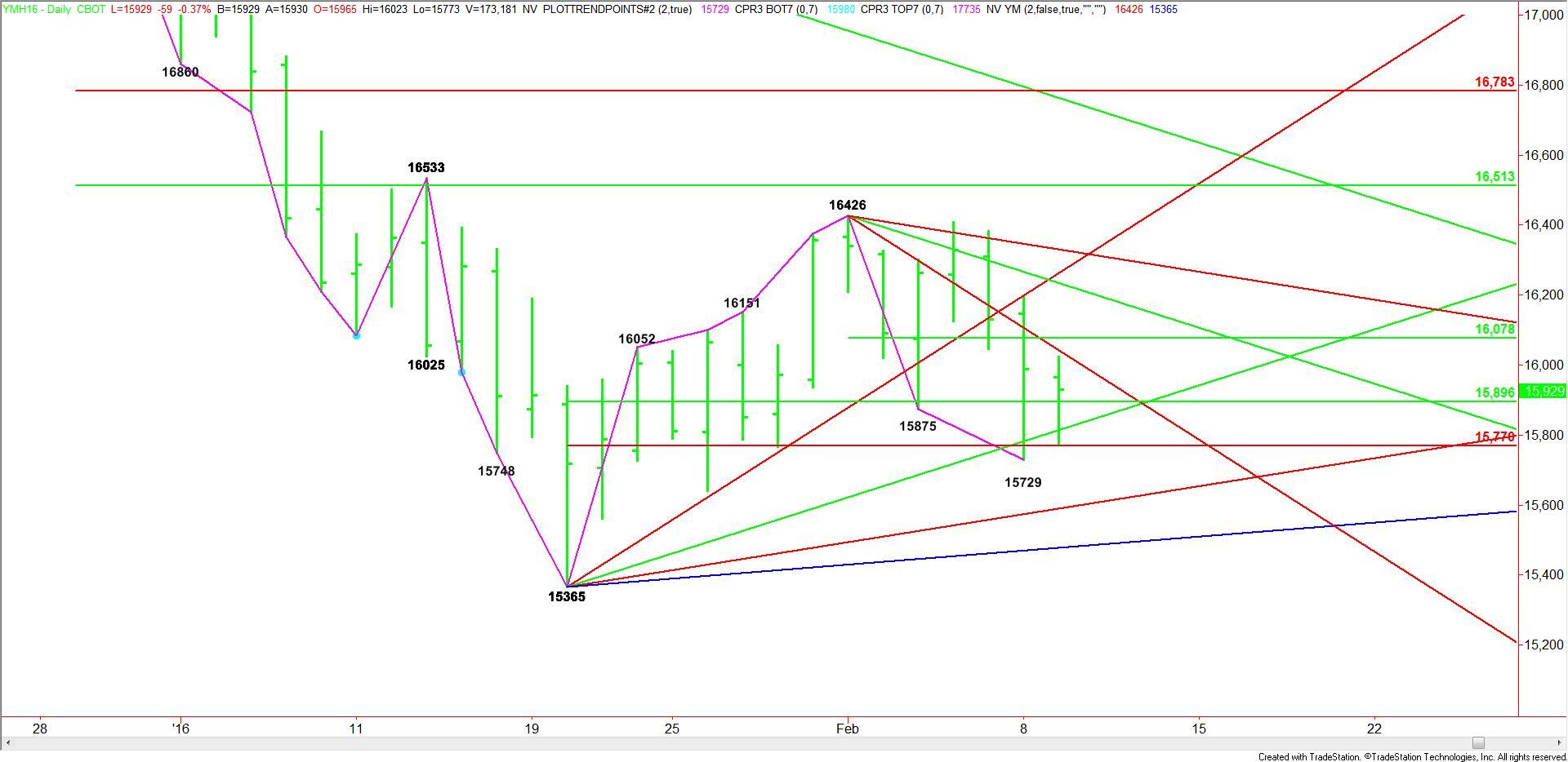 The main range is 15365 to 16426. Its retracement zone is 15896 to 15770. The market straddled this zone on Monday and earlier today. This could be indicative of accumulation. If accumulation is taking place then buyers are coming in to support the market.