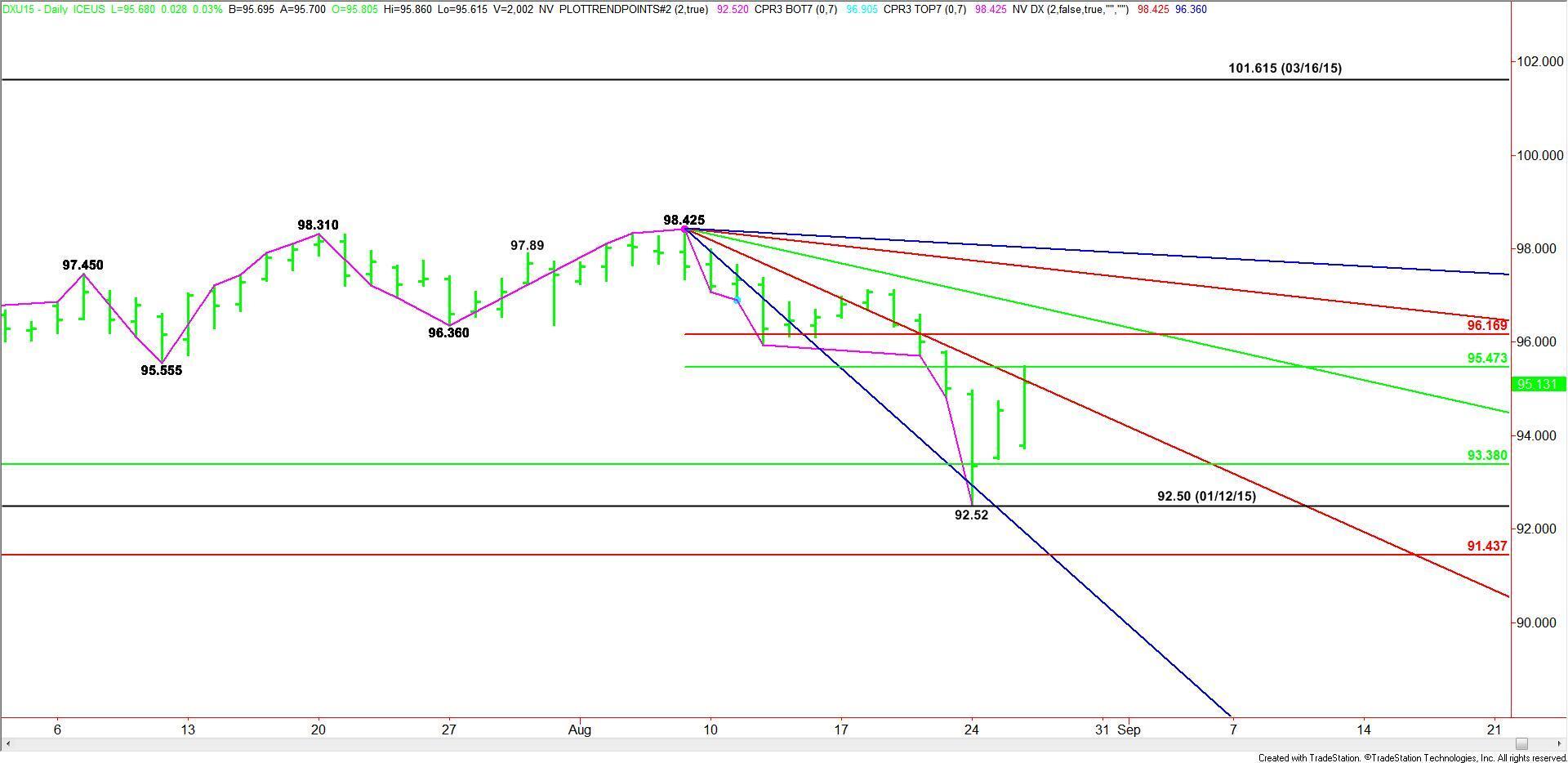 September U.S. Dollar Index futures posted another strong gain on Wednesday, with the Greenback still picking up strength after the People’s Bank of China cut interest rates and lowered the reserve requirement for banks earlier in the week. The PBOC also flooded the market with Yuan in an effort to provide liquidity to the financial system. This activity also gave the dollar a boost.