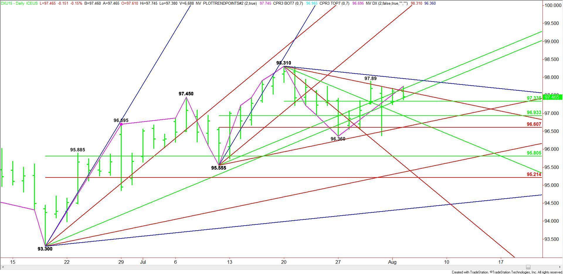 Although the main trend is up on the daily swing chart, September U.S. Dollar Index futures appear to be losing upside momentum, leading to a