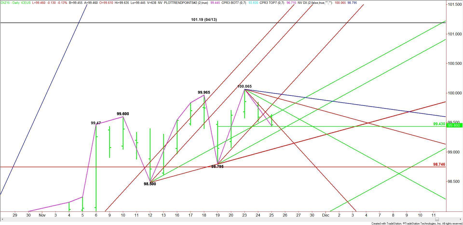 The short-term range is 98.795 to 100.065. Its 50% level or pivot at 99.43 is controlling the near-term direction of the market. Trader reaction to this level should set the tone for the day.