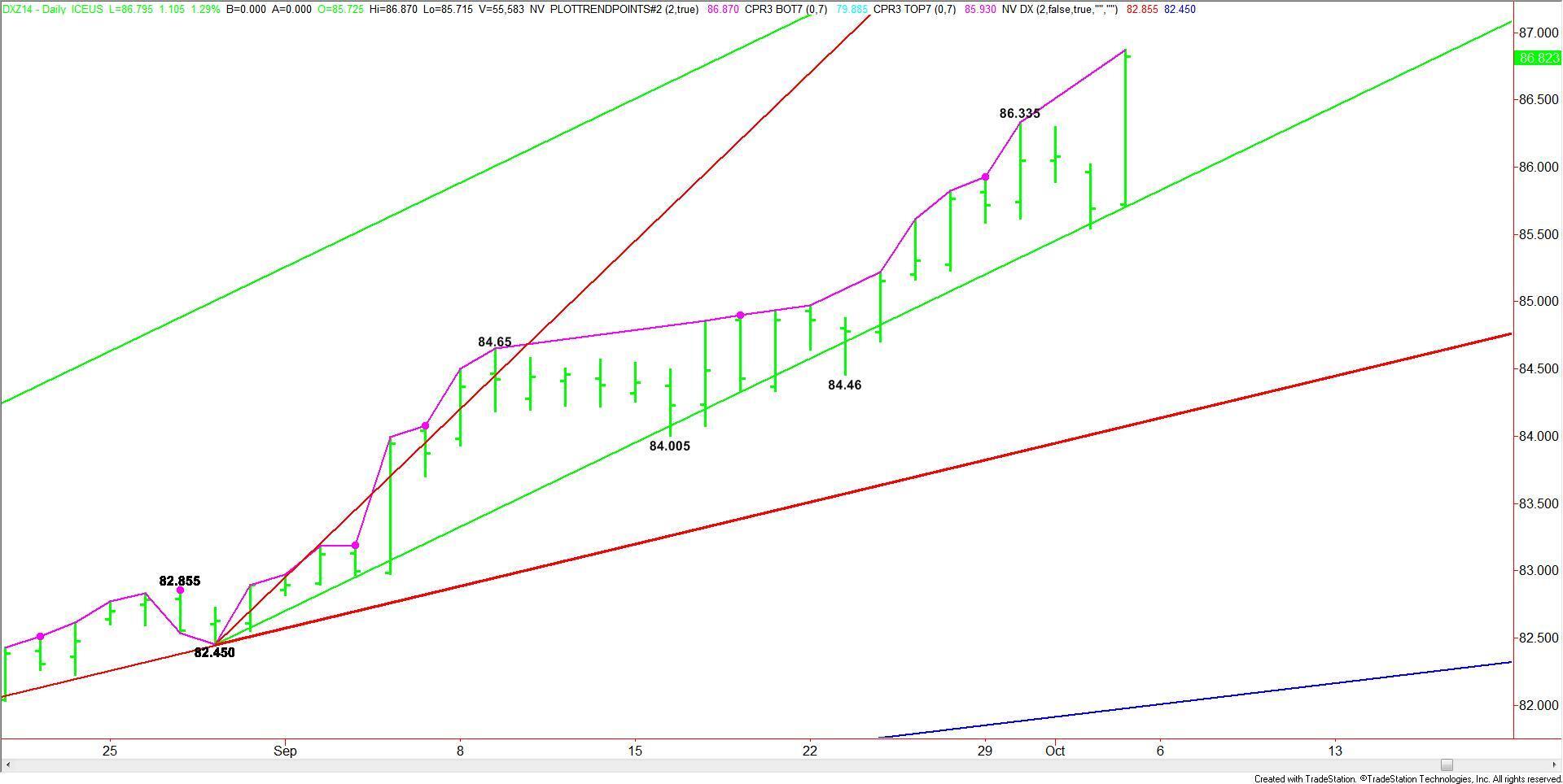 December U.S. Dollar Index futures soared on Friday, following the release of better-than-expected U.S. jobs data. The results of the report pushed U.S. interest rates higher, making the dollar a more attractive investment.