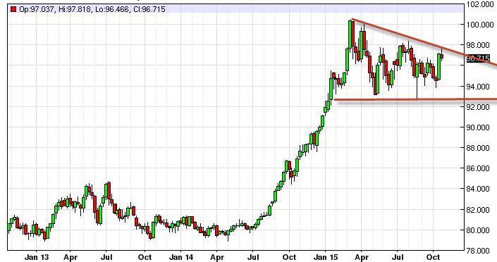 The US Dollar Index initially rallied during the course of the week but found so much in the way of resistance at the 98 handle that we formed a shooting star. This of course is a very negative sign and it now appears that we could be trying to form a descending triangle again. With this, that’s a longer-term bearish candlestick formation, so on a break down below the bottom the shooting star we feel that the market will test the 96.50 level, and then the 94 level over the longer term. On the other hand, if we break above the 98 handle, we feel that the market will continue to go much higher, perhaps reaching towards 101st, and then eventually the 102 level.